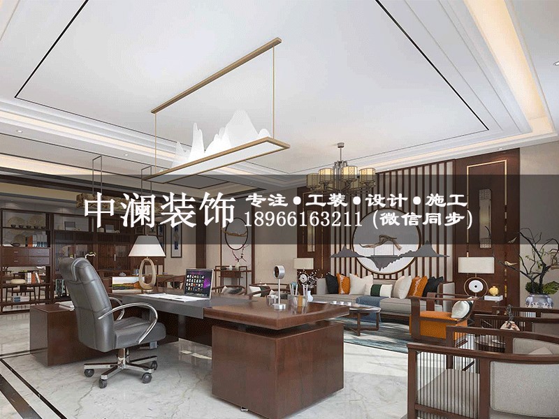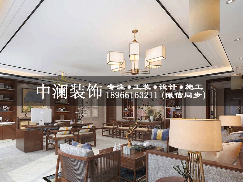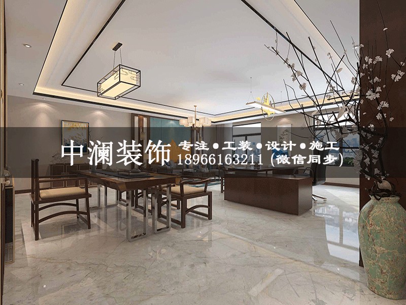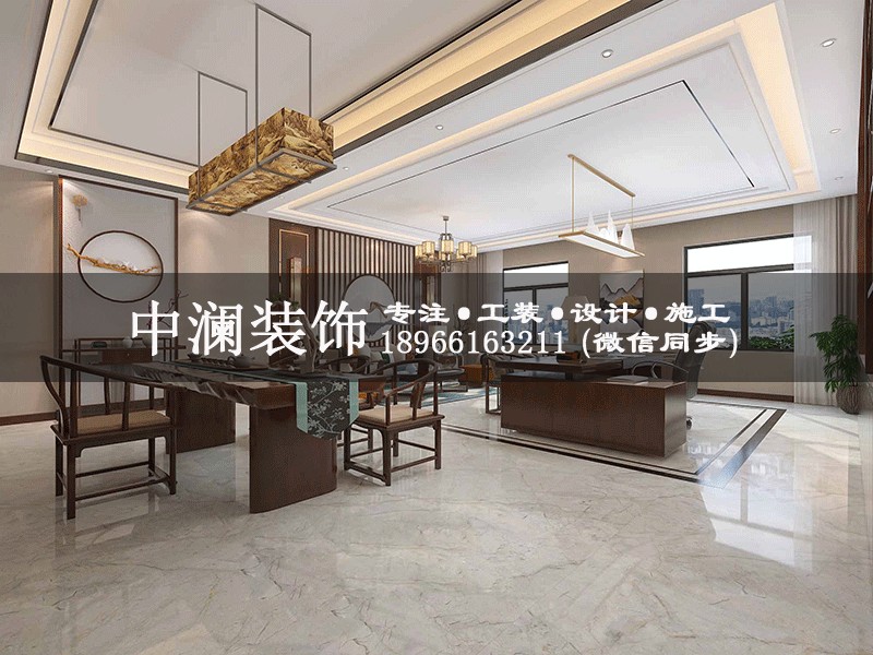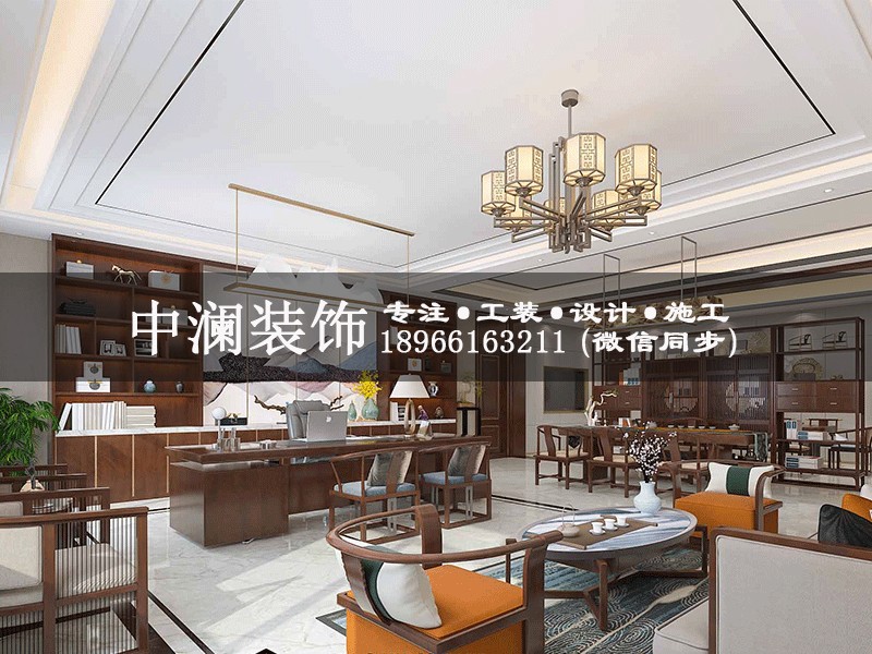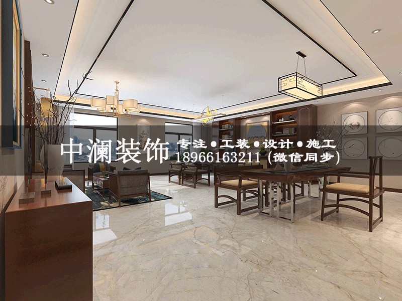 杭州1100方純中式辦公室裝修設(shè)計效果圖